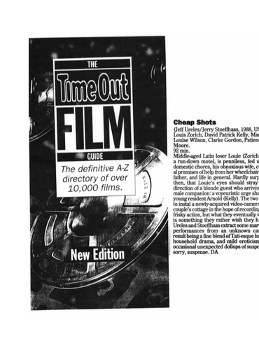 CHEAP SHOTS is anything but. It's a black comedy somewhat reminiscent of Blood Simple, in which the get-rich schemes of a rural motel manager and its lone tenant backfire with murderously funny results.